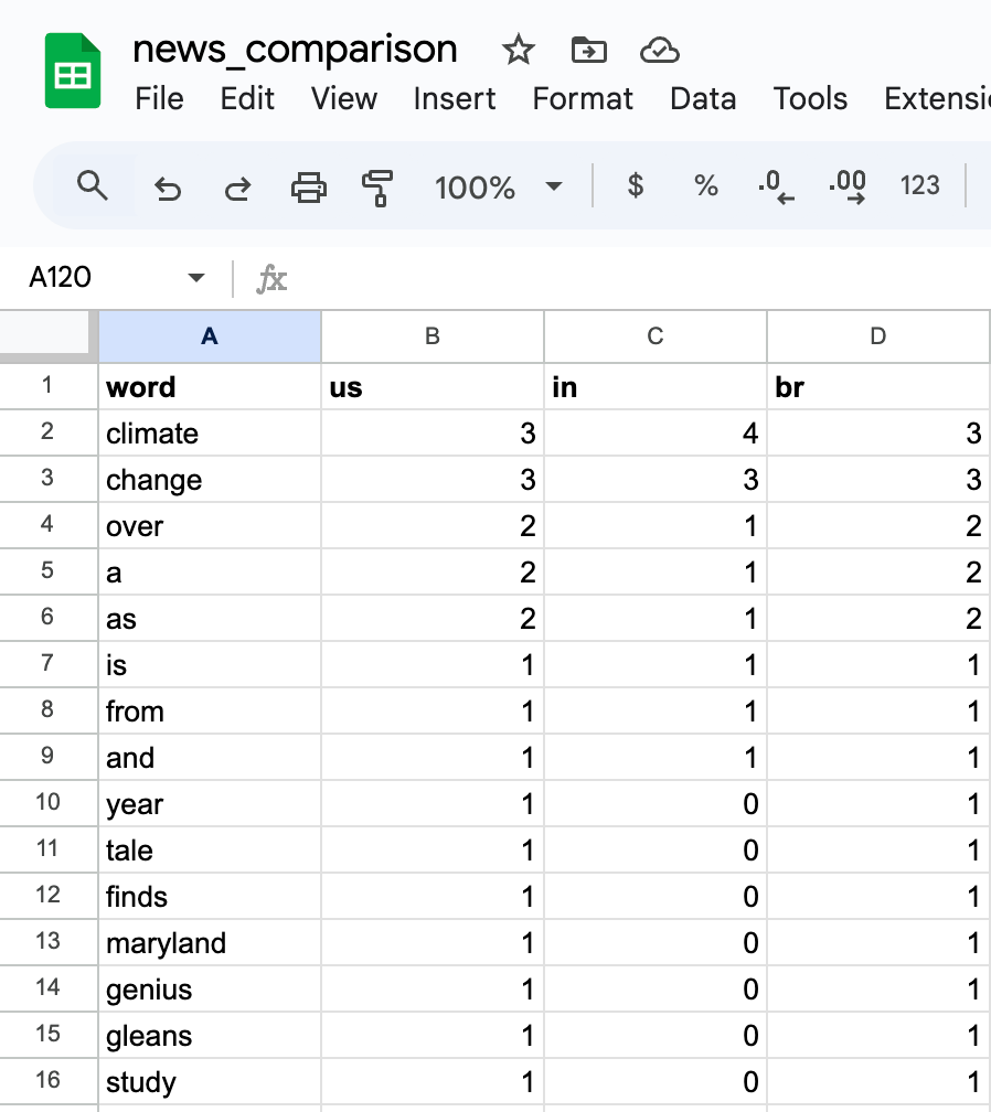df.to_csv("news_comparison.csv", index=False)Using this program you can easily pull full results for each country then track how much each region uses each keyword.