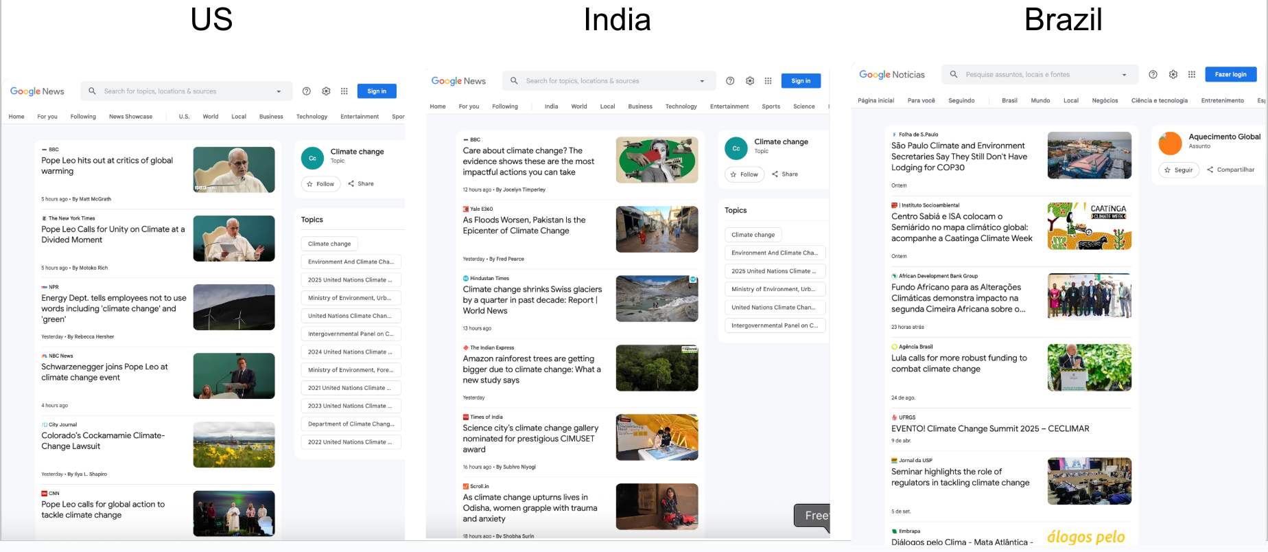 Ever wonder how the same headline reads in United States versus Brazil or India or any other countries or locations? Comparing how the same story is covered across different regions can uncover powerful insights, biases, framing differences, or localized priorities. Understanding how narratives shift across locales is key for media analysis and research.