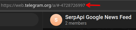 Finally, check the URL in your browser to get the Group ID. We'll need this later for the API. Note that it's inclusive of - so we'll use -4728726997 later to message this Group via API.