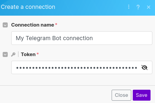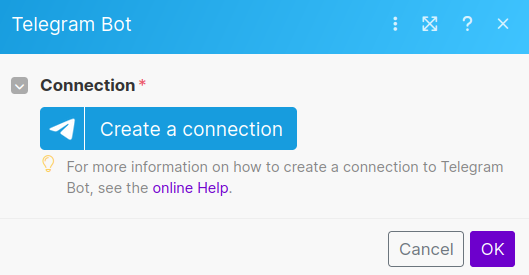 You should see your Telegram Connection appear in the Connection drop-down menu.