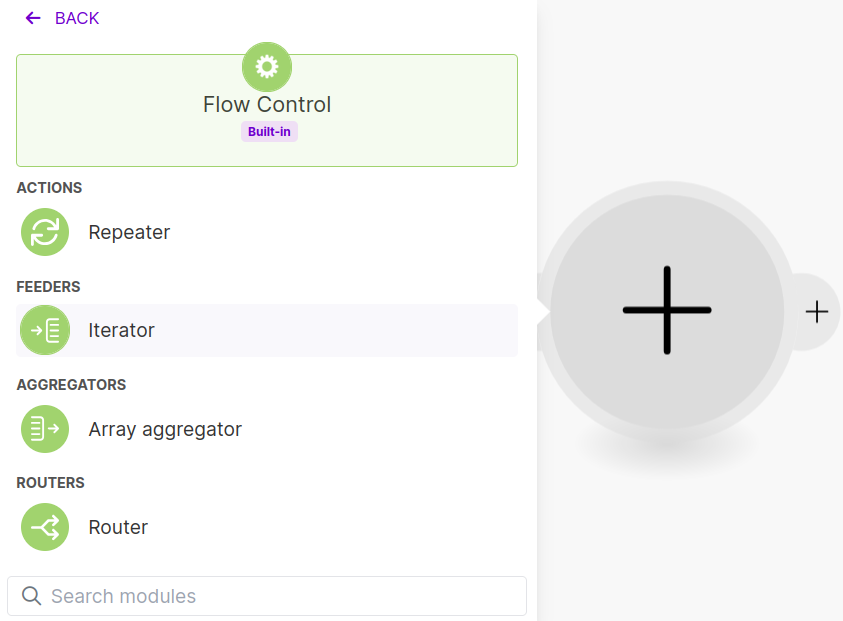We need to unpack this array so we can process each news result one-by-one. Look for the Iterator Module under Flow Control.