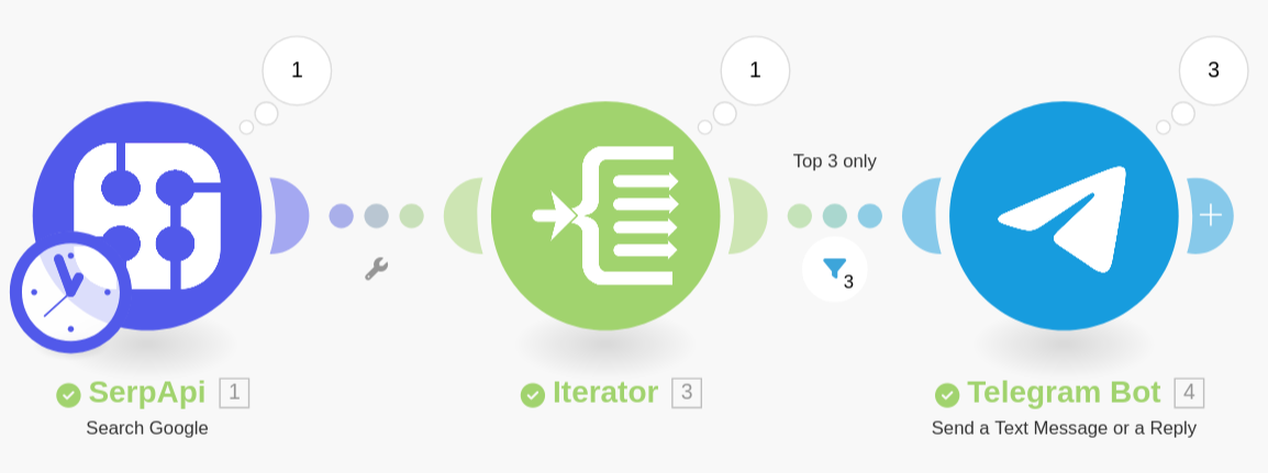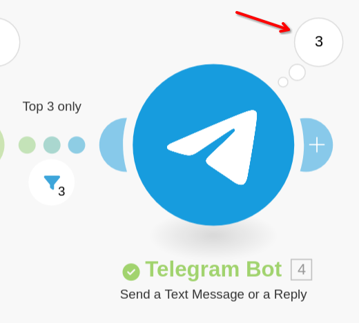 Now try running the Scenario. You should see 3 operations in the bubble coming off the Telegram Module.