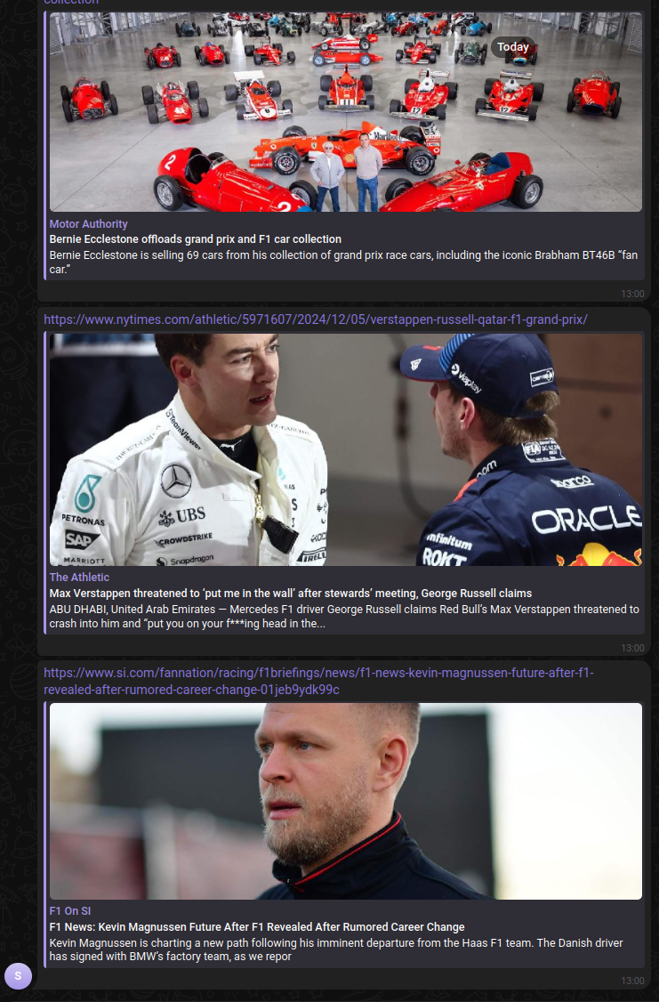 More importantly, you should see 3 news articles appear in your Telegram Group.