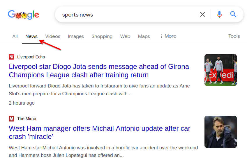 In order to filter Google Search for news only, we add tbm=nws to our request URL.