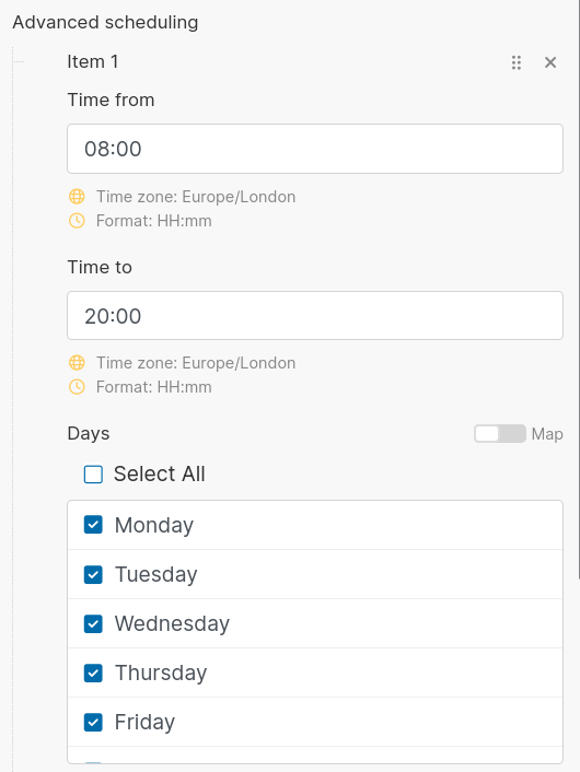 You can also use the Advanced Scheduling feature to set your Scenario to only execute on certain days or during certain times. In the example below, I've set it to run between 8am and 8pm on weekdays.