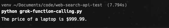 Important: At this stage, Grok doesn't care if we have the actual function to check the price or not. The AI simply wants to know "what tools are available" for them to use.