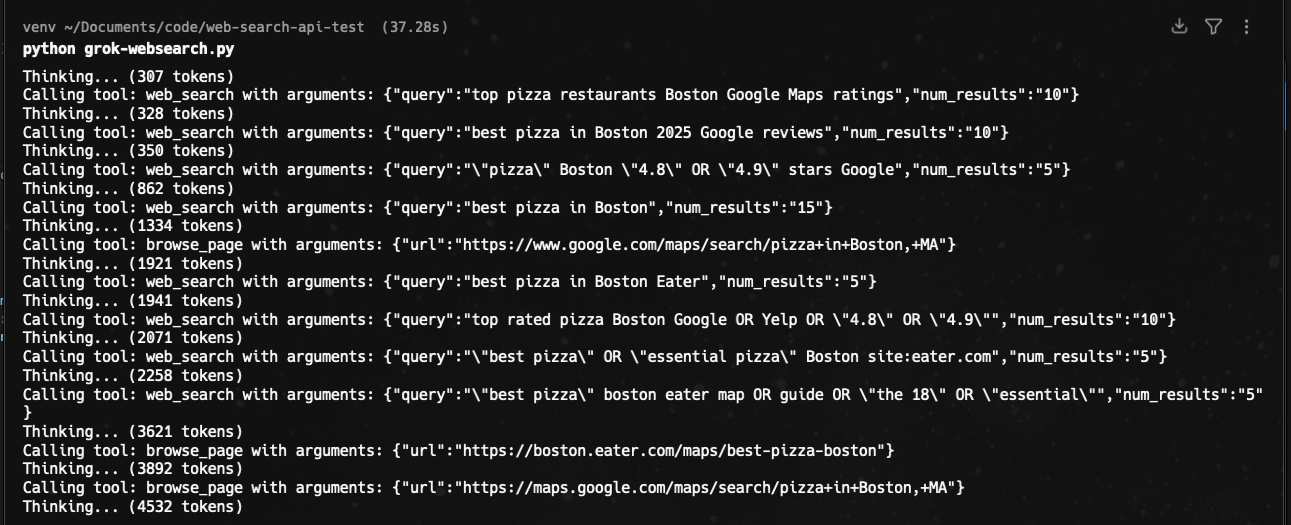 While you can specifically choose the domain, the keyword Grok uses to find answers on the internet is random. For example, when I'm asking for "Top 3 pizza restaurants from Google Maps in Boston. Share some reviews and ratings for each place."
