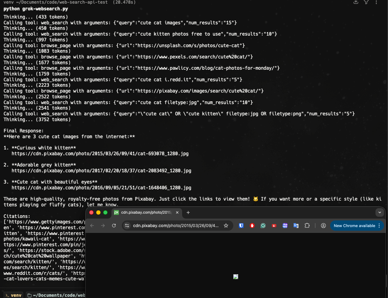 USER_QUERY = "Show me 3 cute cat images from the internet"