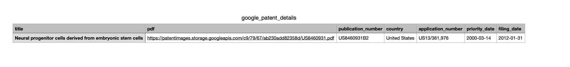 Let's try searching for a patent on Google Patents related to stem cells. Let's say this is the one I'm interested in and want to get all the data for: