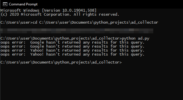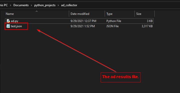 python ad.pyAfter that, we gonna wait for a couple of minutes, and we will get our results as a JSON file.