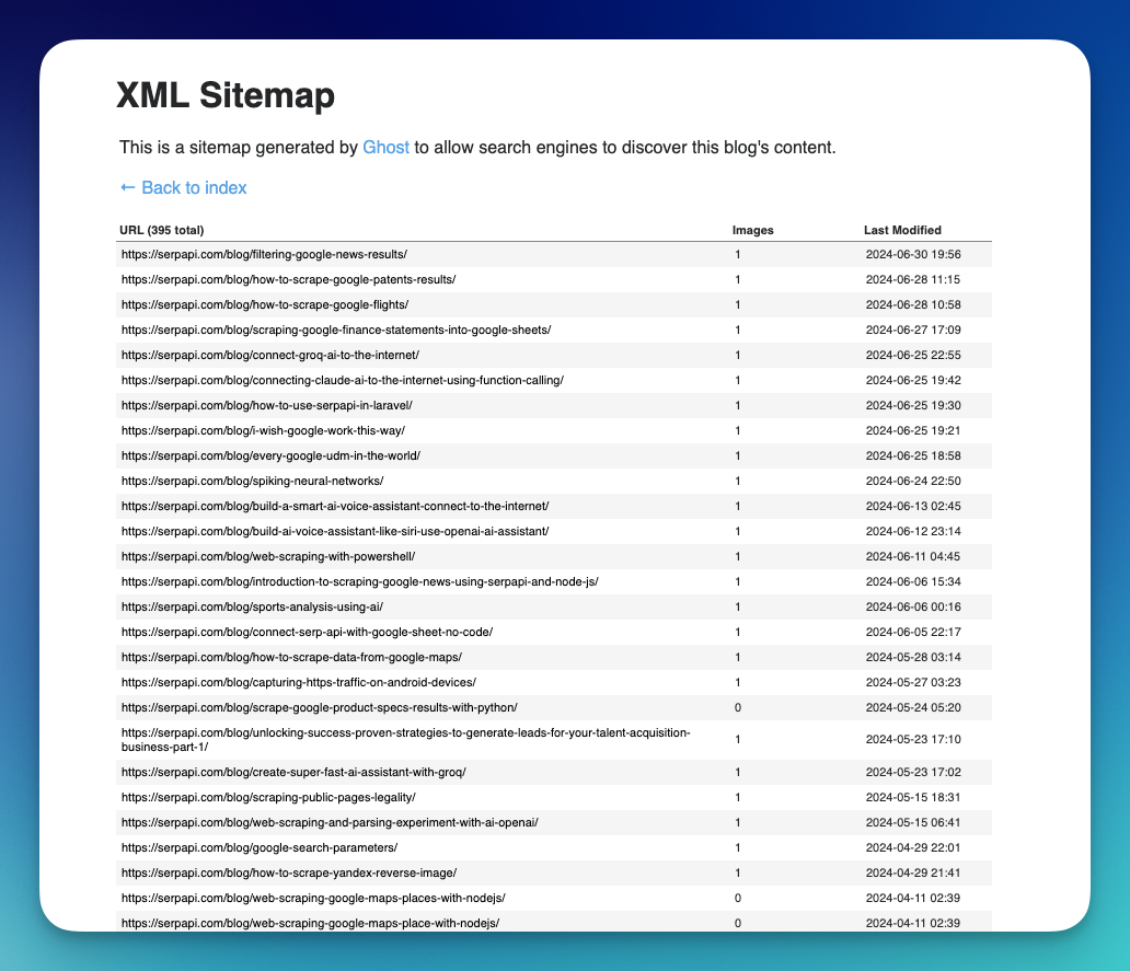 Here is an example of our Blog's sitemap: