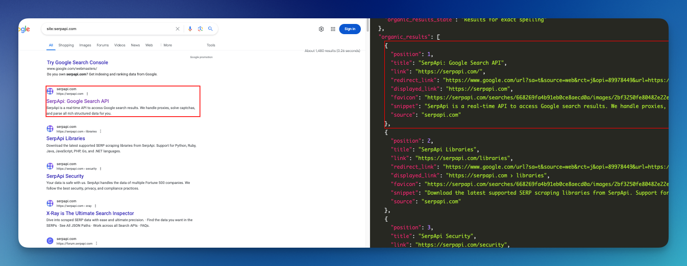 Here at SerpApi, we focus on scraping search engines like Google, so you can grab the data programmatically without implementing a web scraping solution on your own.