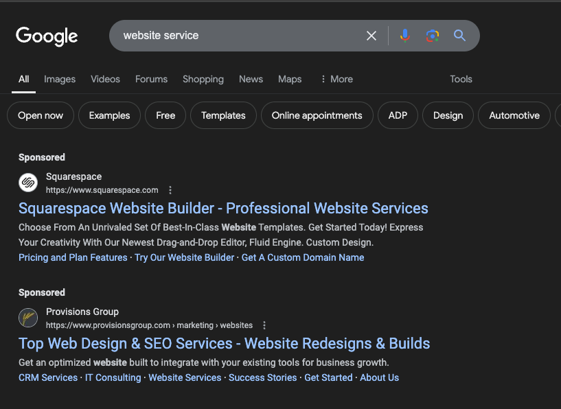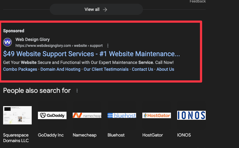 Sponsored results are not just at the top of search results but also at the bottom of your search.