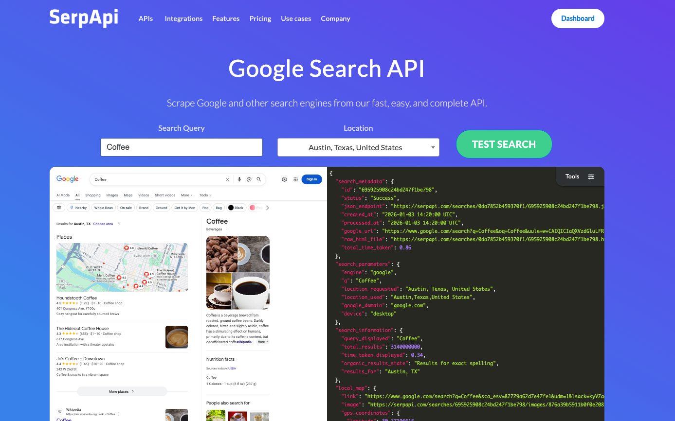Create a free account and try it yourself. Visit SerpApi.com to get started.