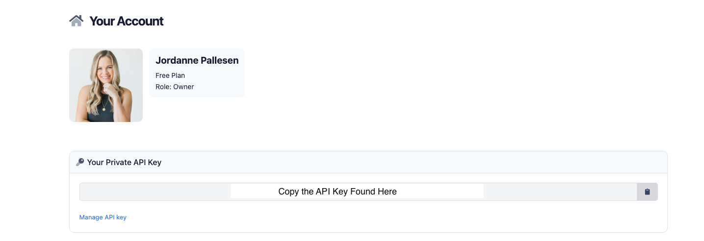 Once you’re in your dashboard, you’ll see your private API key. Copy it.