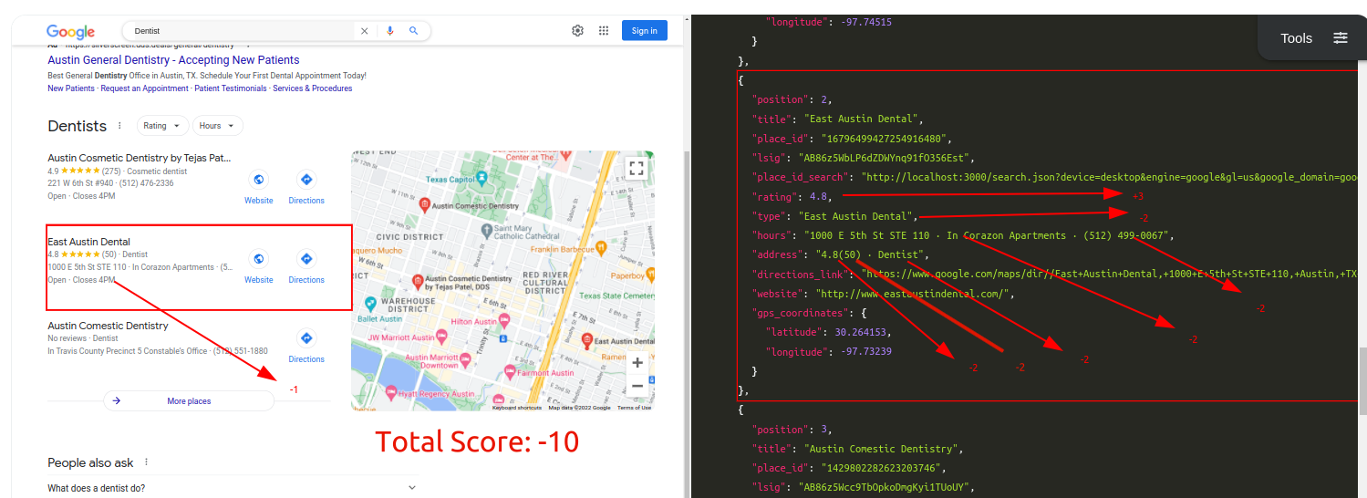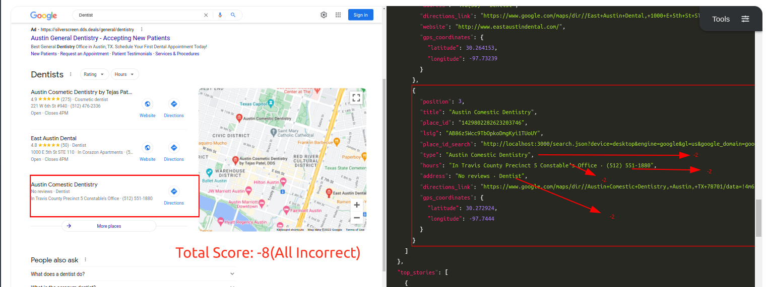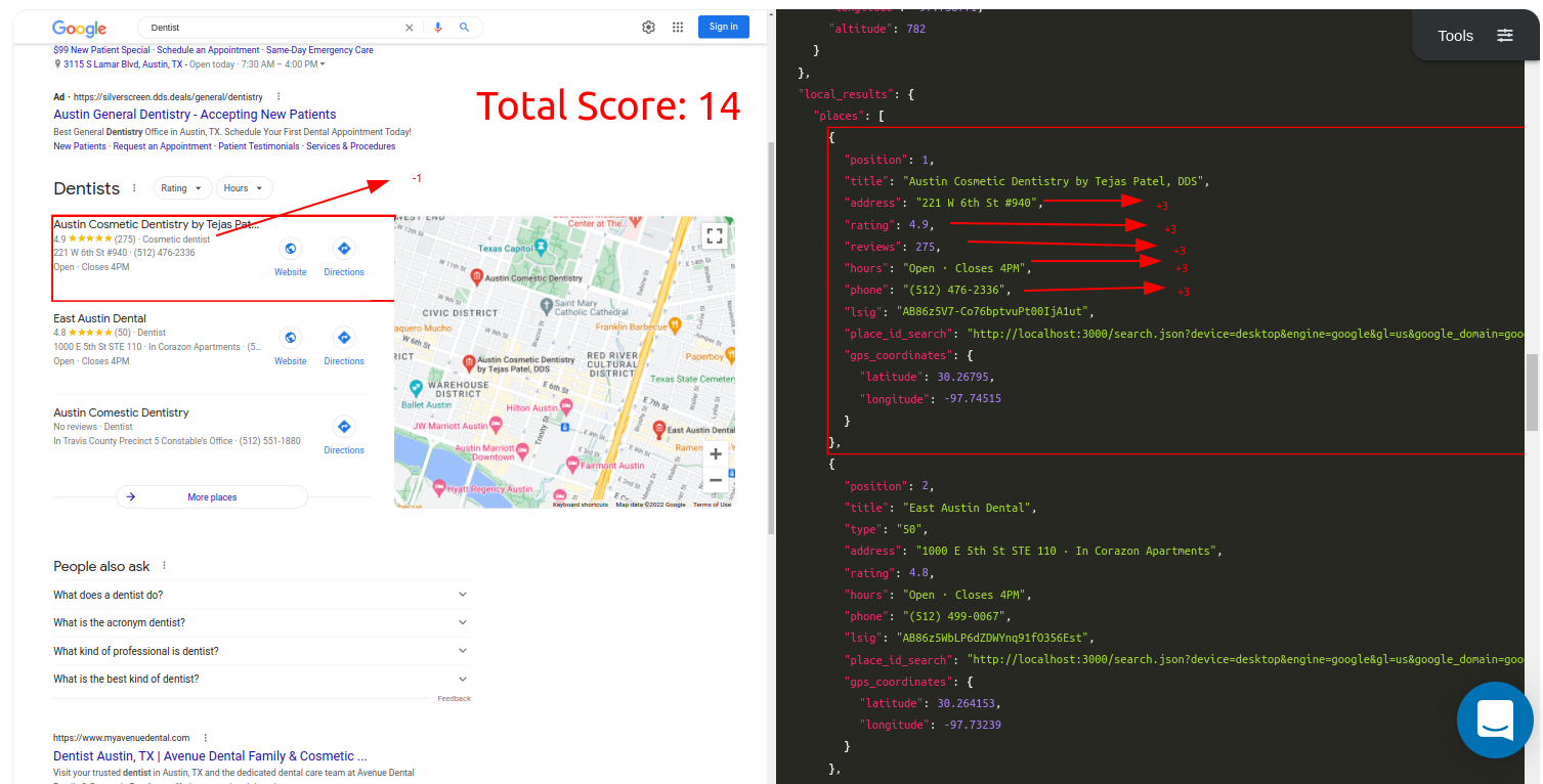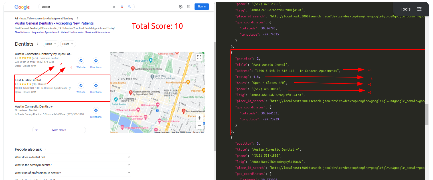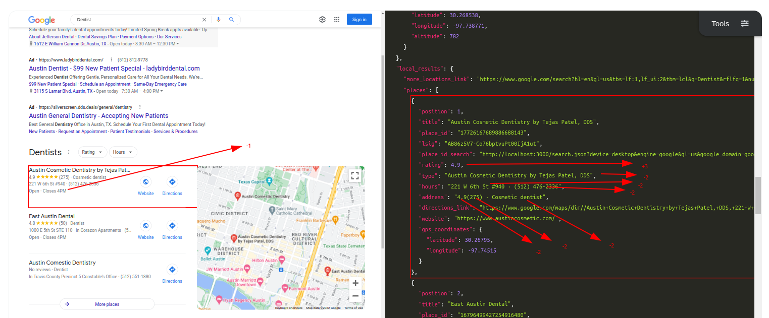This week we'll share the comparisons with our problematic parser and how ML-Hybrid model will improve our parsing. I picked SerpApi's Google Local Pack Scraper API as the testing ground. We'll only use Desktop results in the scope of this comparison.