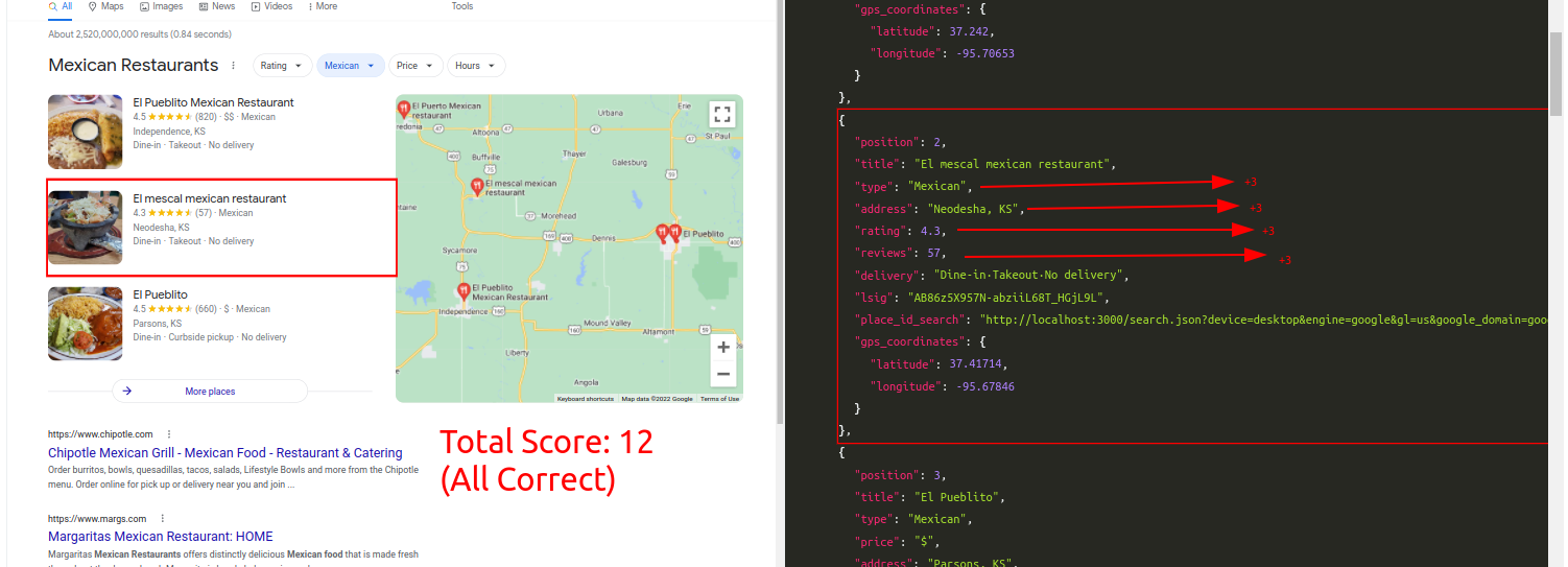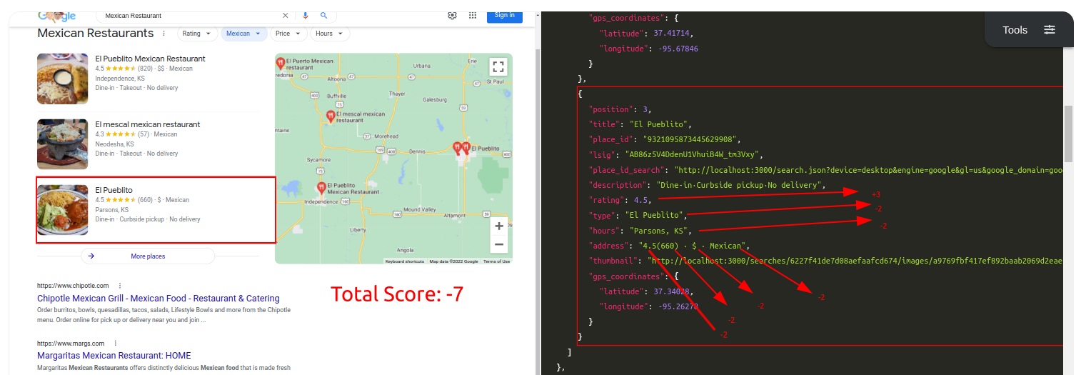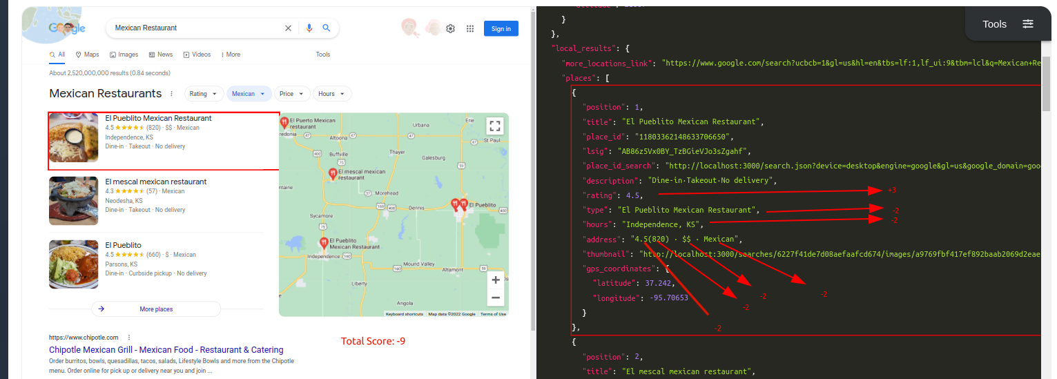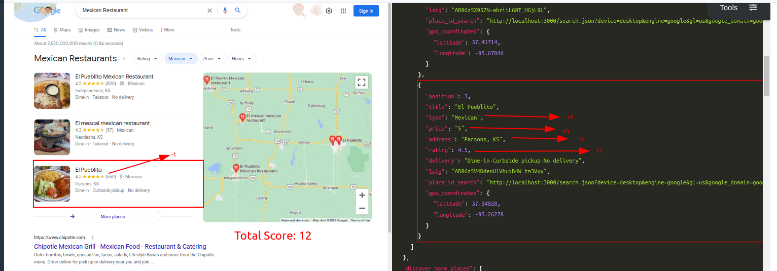 Query: Mexican RestaurantTraditional Parser Score: -7ML-Hybrid Parser Score: 12 (All Correct)