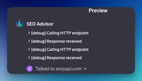 It will also run a search with a sample keyword for us. It shows us the top 5 results with a link to the content to ensure the GPT is not hallucinating.