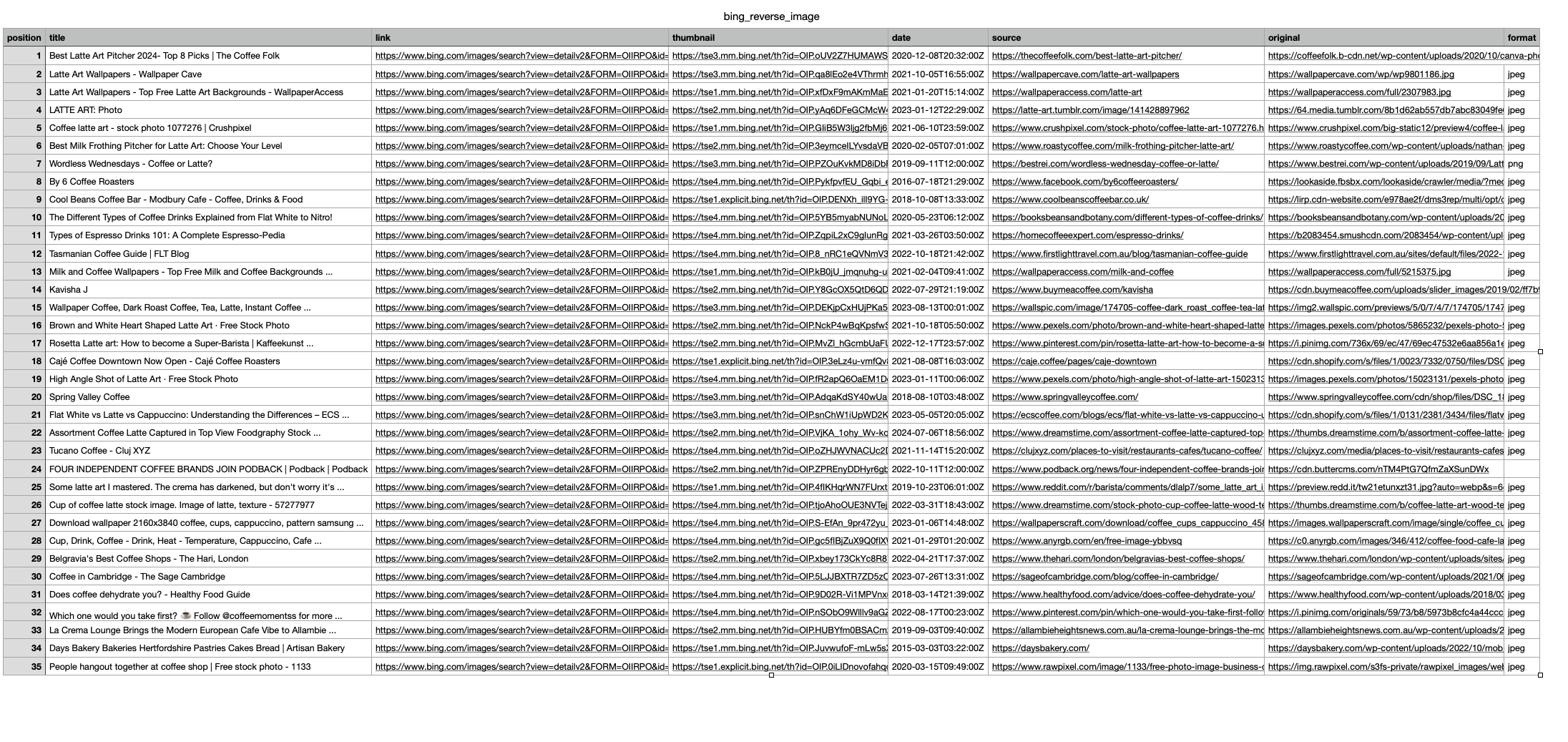 We will find all similar images with results: "position", "title", "link", "thumbnail", "date", "source", "original", "format" and more. You can also scrape more information with SerpApi.