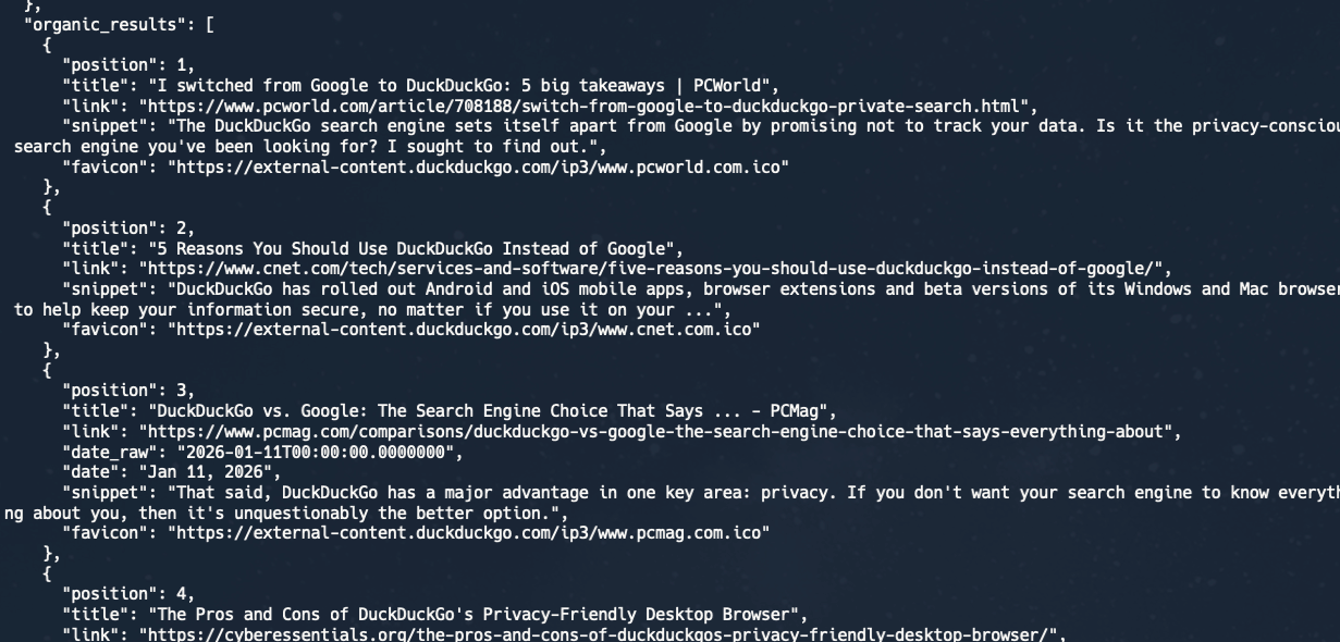 print(json.dumps(response, indent=4))You can always refer to the DuckDuckGo Search API documentation for details.
