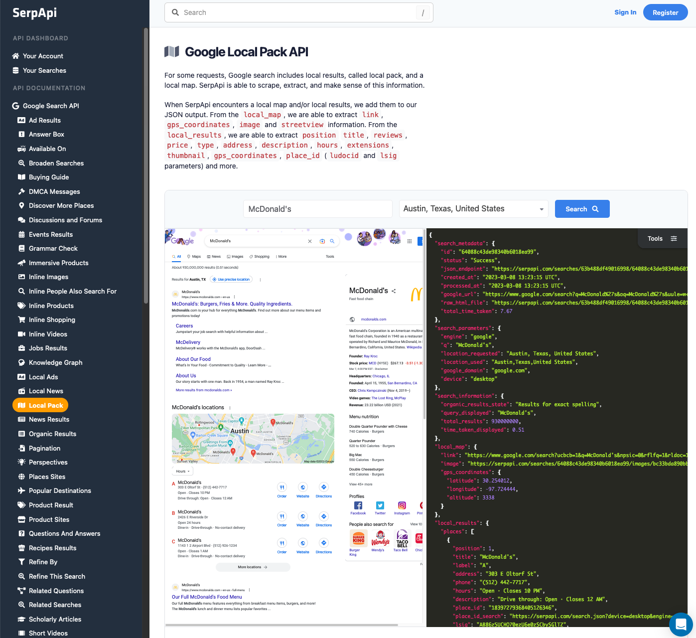 With SerpApi, we carefully handle all the hard work for you. We provide high-quality Google Local Pack APIs(scrapers) that are easy to use. Let's see how it works.