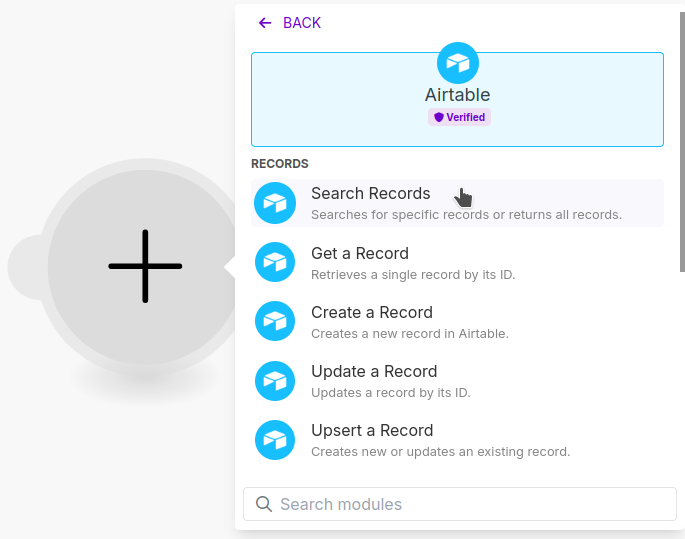 Add the Search Records Module from the Airtable App.