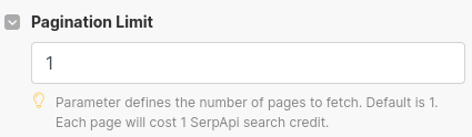 - Each page of results from SerpApi consumes a search credit. Be mindful of your plan's allowance.