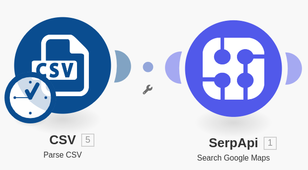 The Module will appear unlinked. Drag it to the beginning of the Scenario and connect it to the SerpApi Module so it's the first Module in the Scenario.