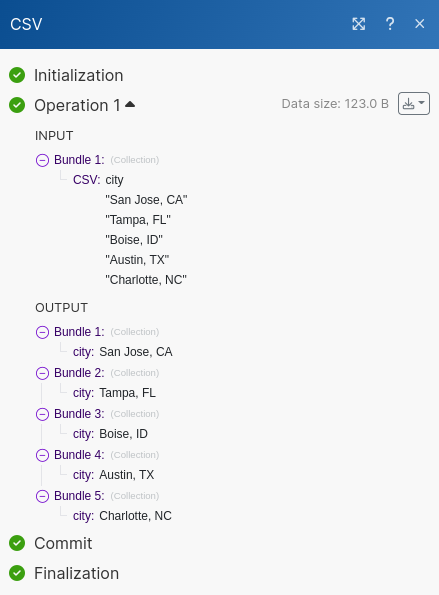 Warning: Each city requires about 40 Make Operations to process. Our list of 5 cities therefore requires a little over 200 Make Operations. Please be mindful of your Make plan's limits before testing with multiple cities. You can still validate the setup works by setting only one city in the CSV Module.