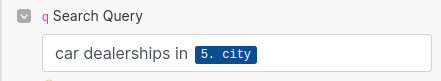 Our search query will be structured as car dealerships in {city}. We'll start with a single city to ensure our pipeline works. Later in the tutorial, we'll look at how to deal with multiple cities.
