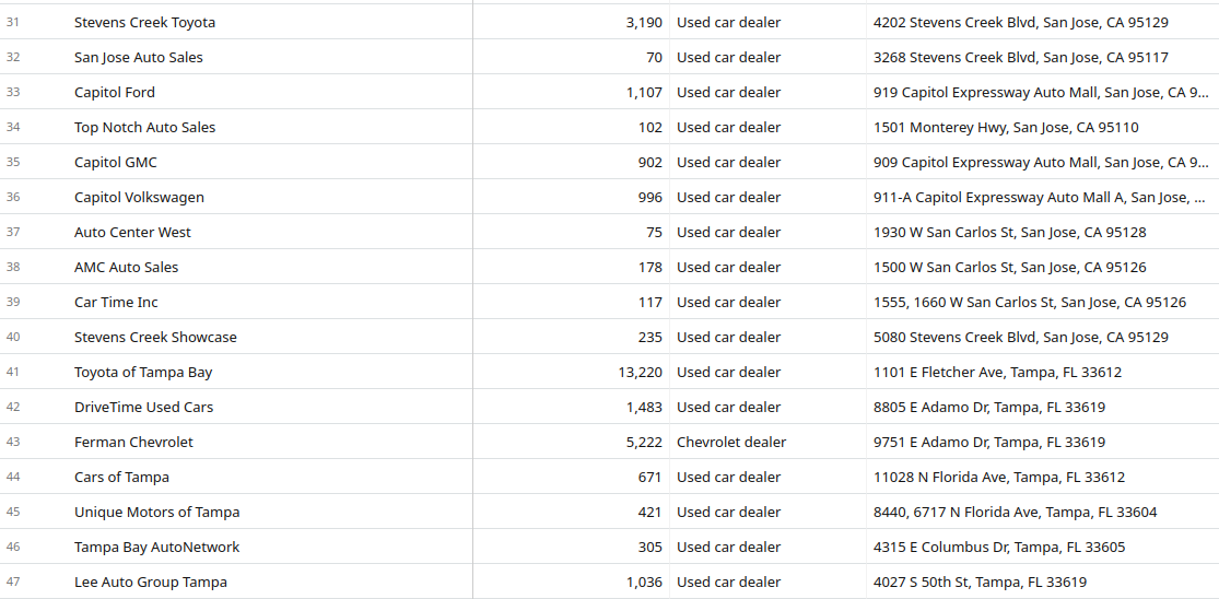 If we check Airtable, we see car dealerships from our new list of cities have been added.