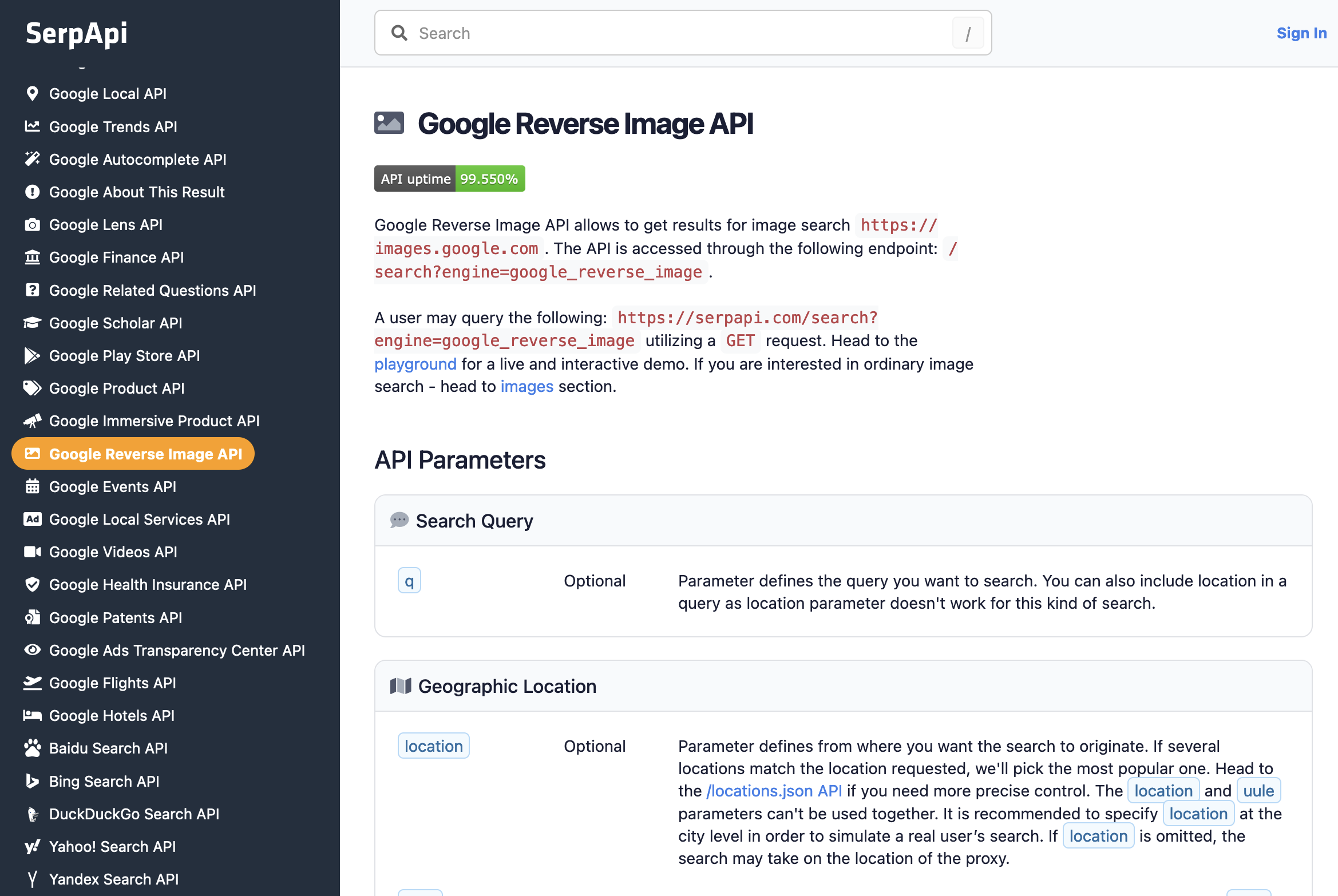 Head to the Google Reverse Image Results documentation on SerpApi for details.