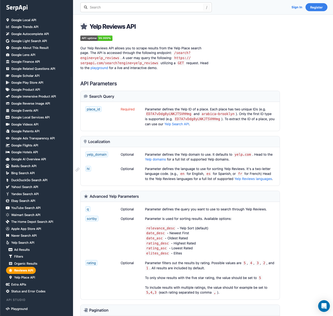 Head to the Yelp Reviews API from the documentation on SerpApi for details.