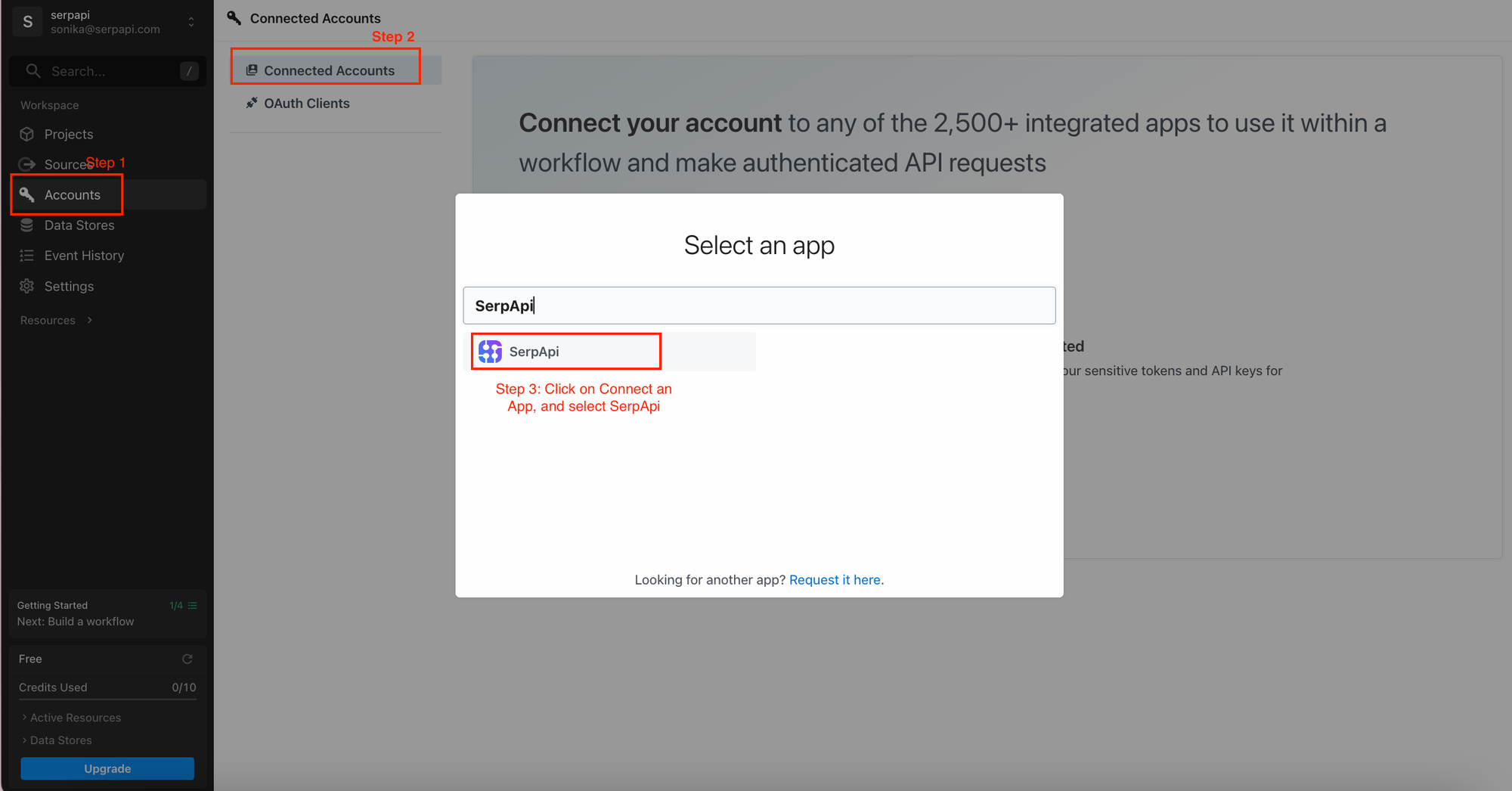 In this guide, I'll walk you through how to set up SerpApi with Pipedream, which will enable you to automatically gather and process data from any of the search engines we scrape after some basic setup. To get started, you need to set up a couple things -