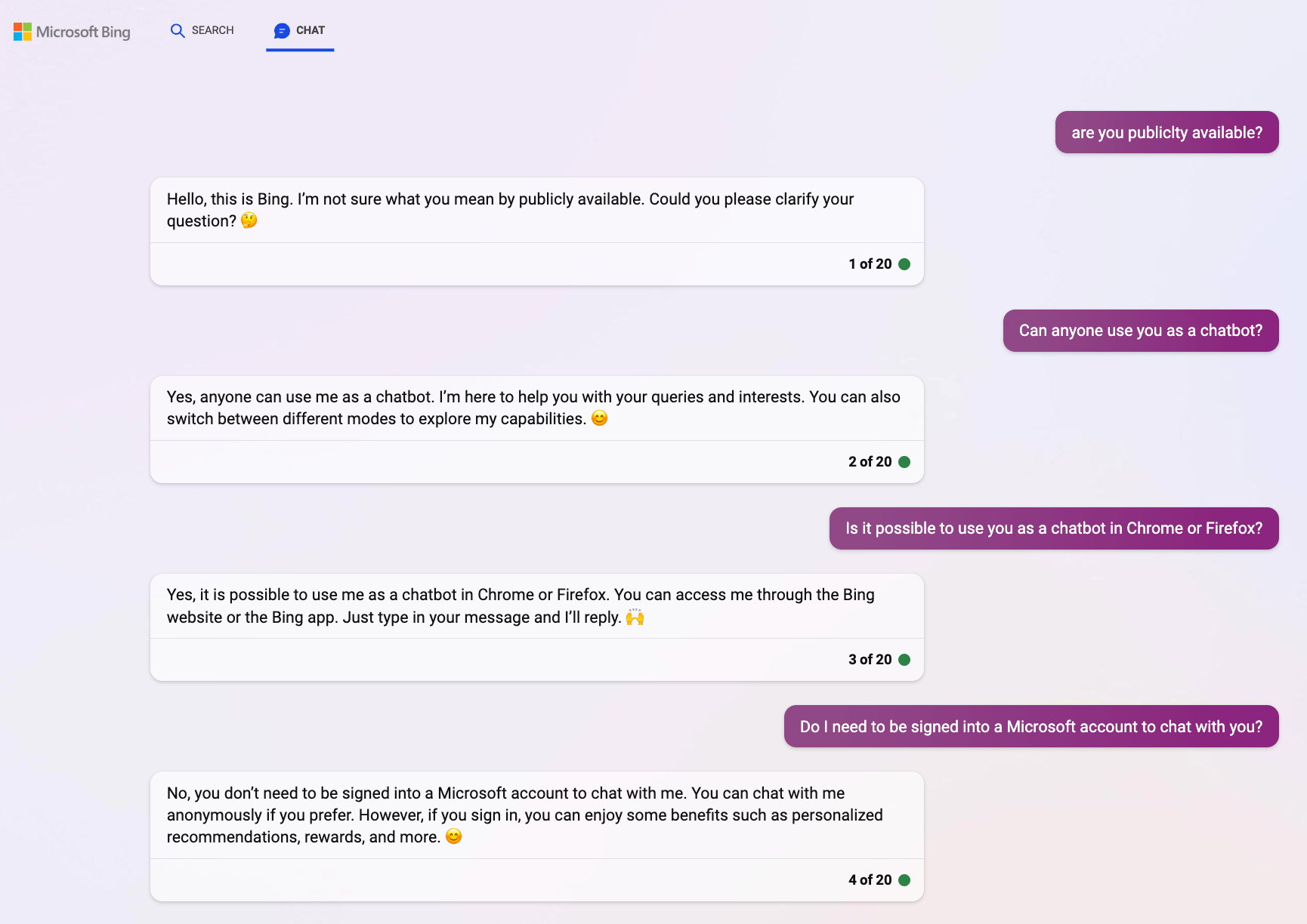 It's less clear when it comes to Bing Chat. Has Bing Chat gone public yet? Even Bing Chat seems to be a little confused about this.