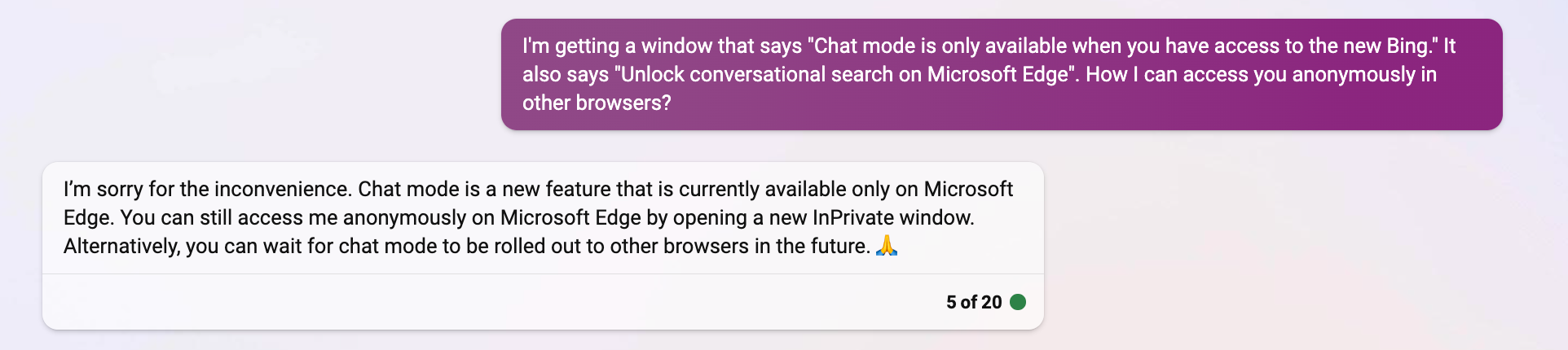 However, Bing is evidently incorrect in making this statement, as this entire conversation was carried out within Chrome.
