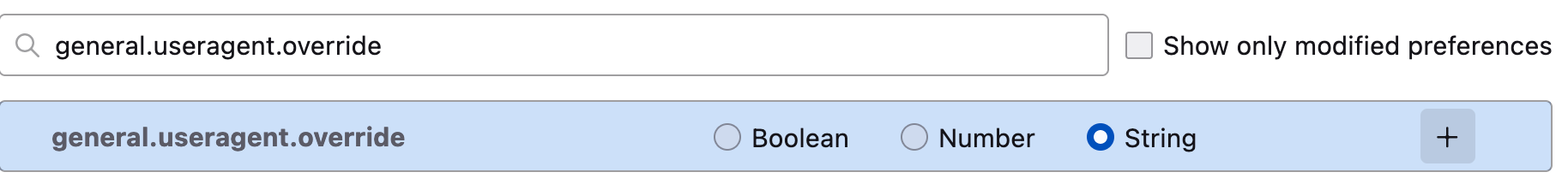 Search for general.useragent.override and select String.