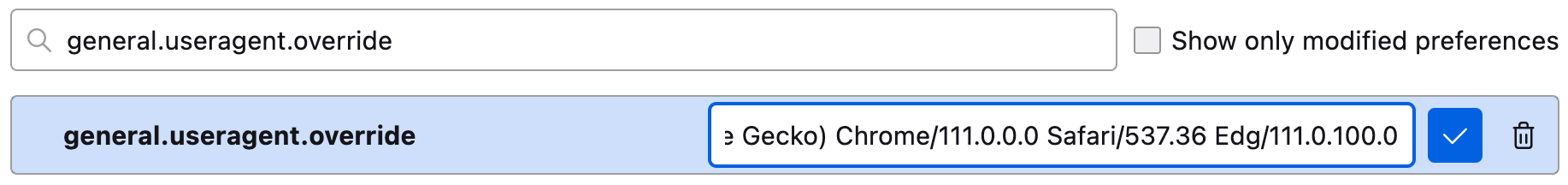 Then copy and paste the following: Mozilla/5.0 (Windows NT 10.0; Win64; x64) AppleWebKit/537.36 (KHTML, like Gecko) Chrome/111.0.0.0 Safari/537.36 Edg/111.0.100.0