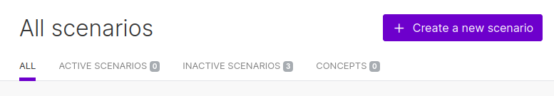 Assuming you've created a Make account and have logged in, select the "Scenarios" option in the sidebar menu. Then click "Create a new scenario".