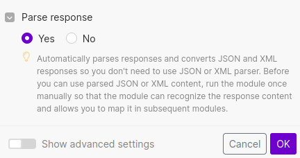 Set it to parse response and then click "OK".