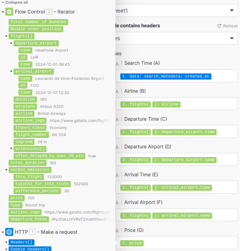 Airline: {{2.flights[].airline}}<br />