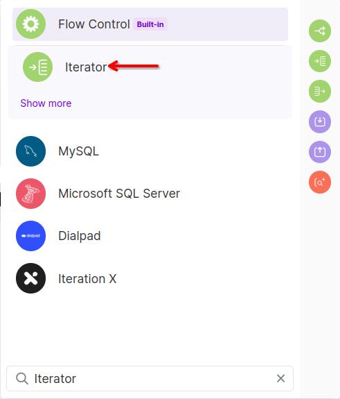 Search for and select "Iterator."