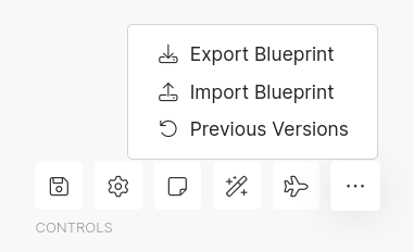 You can import a blueprint by clicking on the "..." button to show more controls and then select "Import Blueprint." Then select the blueprint JSON file.