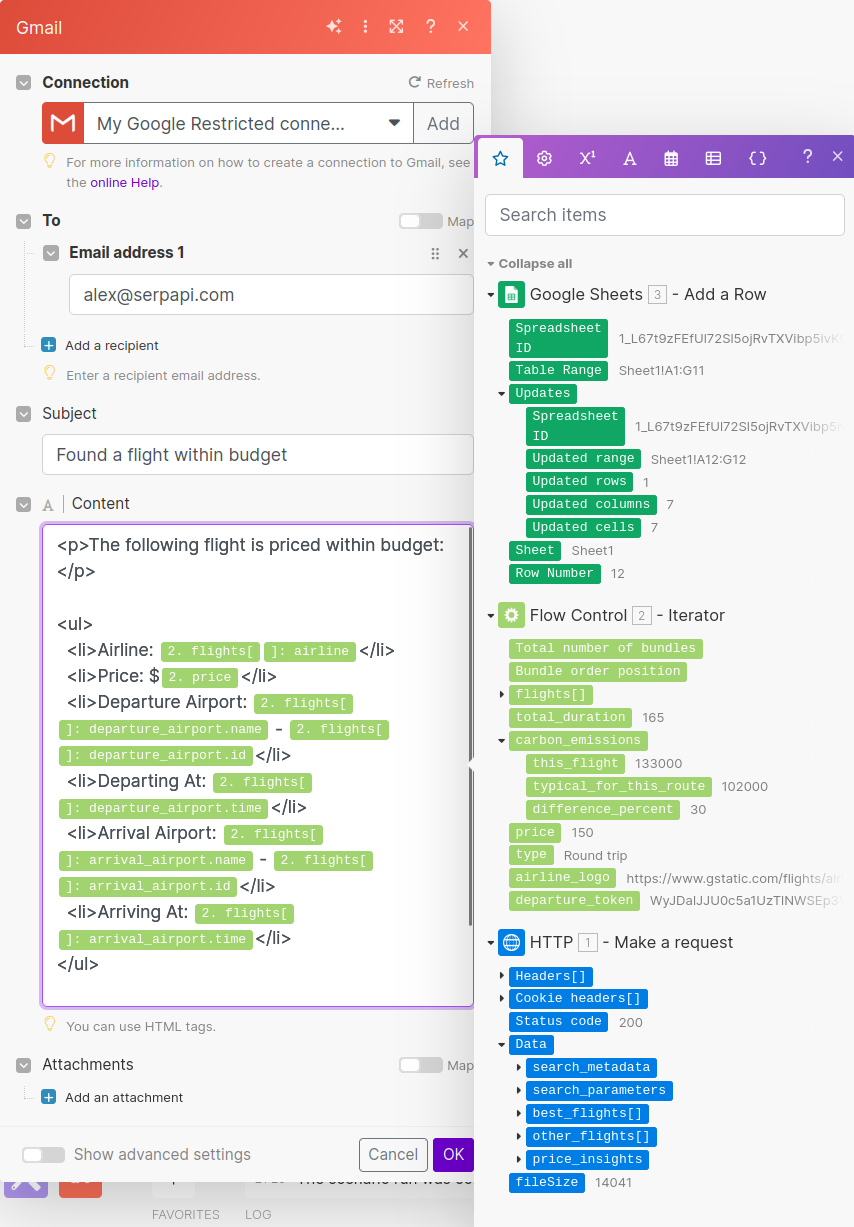 The good news is you can make your own, and you don't even have to know how to code to do it. In this tutorial, I'll walk you through how to use Make.com (a.k.a. Make) and SerpApi's Google Flights API to track flight prices for you. We'll also connect Make with Google Sheets and Gmail along the way.