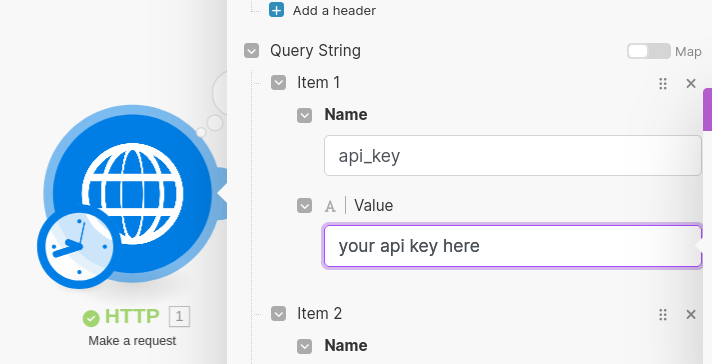 You'll need to add your own API key to the HTTP Module before you can run the Scenario successfully.