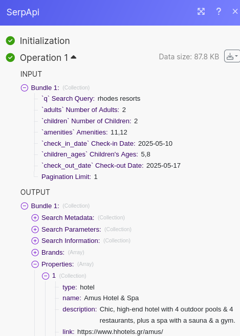 We'll kick things off by grabbing our hotel data from SerpApi's Google Hotels API.