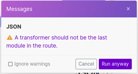 Hit the "Run once" button and accept the warning that the last module shouldn't be a transformer.