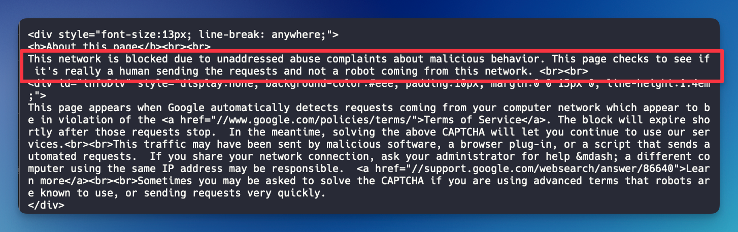 Big companies like Google are much stricter on protecting their site from being scraped. Even using a paid proxy, you might face multiple layers of challenges before you can start scraping data from Google.