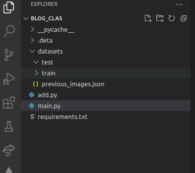 datasets: This folder will be where we will store the images we will download, store the old download history, and split the test database into train database.datasets -> test: This folder will contain different folders within itself with names of the queries. Each folder with the name of a query will contain the images we will use.datasets -> train: Not in scope of this week. But it will be a replica of the test folder in terms of structure. However it will have less number of images in each folder than test folder for training purposes.datasets -> previous_images.json: This file will contain previous links that has already been downloaded to avoid redownloading the same image.add.py: This file will be responsible for collecting unique links from SerpApi's Google Images Results Scraper API, and then downloading the images into their corresponding places.main.py: Main file for running server and defining routes.requirements.txt: Libraries we use in running Serpapi. You need to download them via pip.