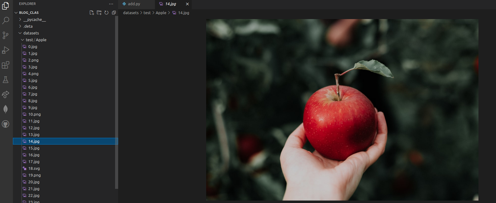 As you can see the datasets -> test folder is empty, and upon execution it will be filled with images.